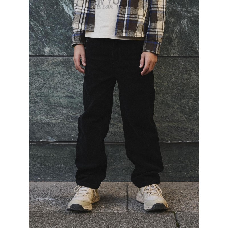 Kleed je kind comfortabel en cool met trendy broeken die heerlijk zacht aanvoelen.Ribfluweel is een glanzende stof met een fluweelachtig ribbeloppervlak wat zorgt voor een zacht gevoel. - Producttype : Straight fit broek - Sluiting : Haak, knoop en gulpsluiting - Zakken : Achterzakken, Muntzakje, Voorzakken - Details : Verstelbare taille, Eva tussenzool, Studs - Pasvorm : Deze broek heeft een regular fit taille en straight fit pijpen Samenstelling :80% Katoen, 20% Gerecycled katoen