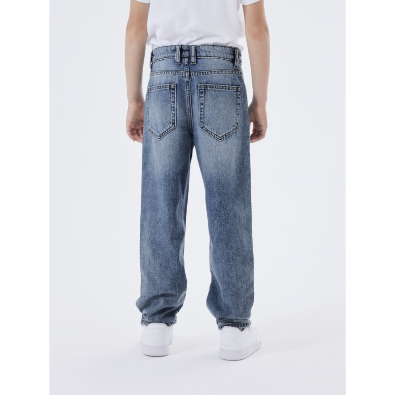 Vind de perfecte jeans en verras je kind met tijdloze items die zorgen voor een gave look en bewegingsvrijheid.Denim is een duurzame geweven stof die verkrijgbaar is in verschillende versies voor een unieke look. - Producttype : Straight fit jeans - Sluiting : Haak, knoop en gulpsluiting - Zakken : Achterzakken, Voorzakken - Details : Verstelbare taille, Eva tussenzool, Studs - Wassing/Afwerking : Afgedragen look - Pasvorm : Deze jeans heeft een regular fit taille en straight fit pijpen Samenstelling :50% Katoen, 50% Biologisch katoen