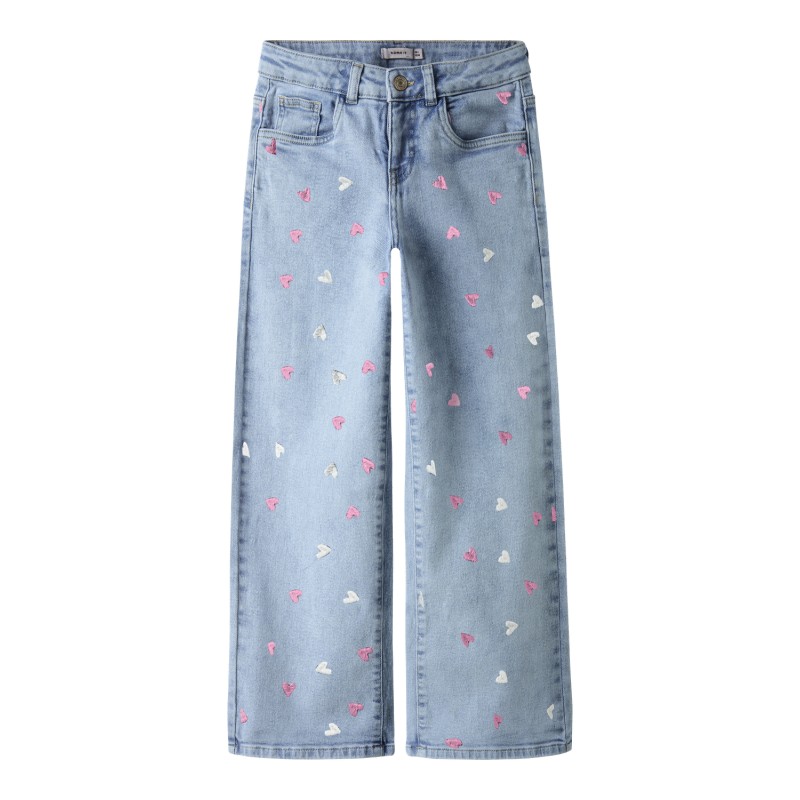Stel de perfecte outfit samen voor je kind met alledaagse items van hoge kwaliteit, waarmee je een comfortabele en trendy look kunt creëren.Denim is een duurzame geweven stof die verkrijgbaar is in verschillende versies voor een unieke look. - Producttype : Wide fit jeans - Sluiting : Haak, knoop en gulpsluiting - Zakken : Achterzakken, Muntzakje, Voorzakken - Taille : Mid waist - Details : Verstelbare taille, Geborduurd detail - Wassing/Afwerking : Subtiele afgedragen look - Pasvorm : Deze jeans heeft een regular fit taille en wide fit pijpen Samenstelling :78% Katoen, 20% Katoen - Gerecycled, 2% Elastaan