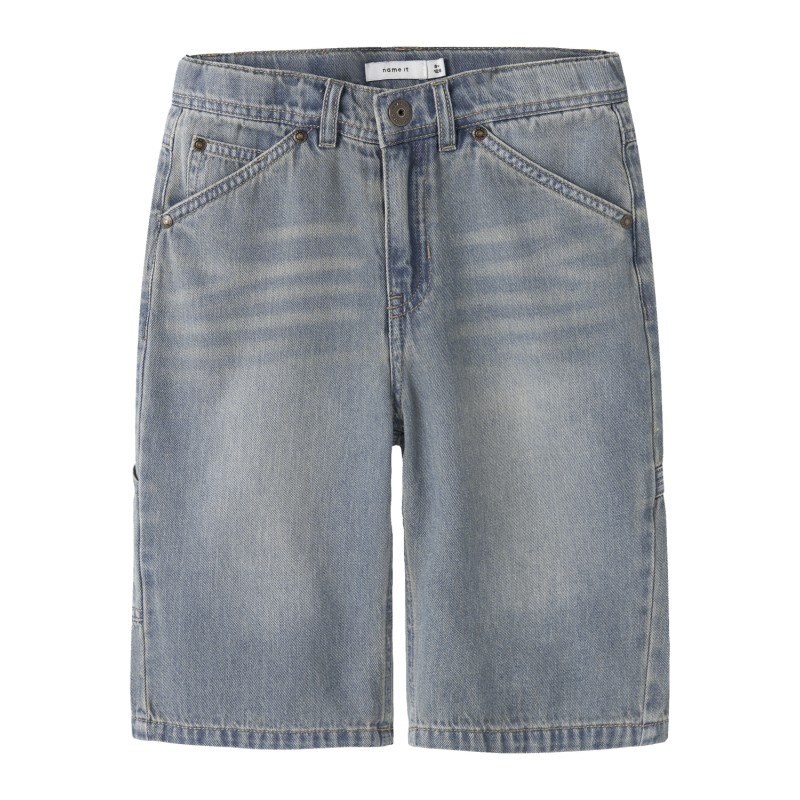 Draag comfortabele en trendy stijlen met veel bewegingsvrijheid voor je kind, perfect voor alledaagse outfits en weekend activiteiten.Denim is een duurzame geweven stof die verkrijgbaar is in verschillende versies voor een unieke look. - Producttype : Bermuda shorts - Sluiting : Haak, knoop en gulpsluiting - Zakken : Achterzakken, Cargozak, Muntzakje, Voorzakken - Details : Verstelbare taille, Badge, Studs - Wassing/Afwerking : Afgedragen look - Pasvorm : Regular fit Samenstelling :100% Katoen - Biologisch