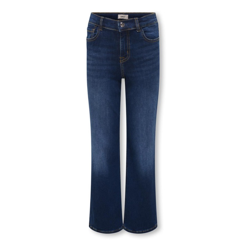 Ontdek je nieuwe favoriete item voor zowel werk als vrije tijd met een coole jeans met de perfecte fit en kleur.KIDS ONLY is een fashionmerk voor kids die weten wat ze willen. Ontdek een wereld van denim, streetwear en andere fashion favourites. - Producttype : Wide-leg jeans - Sluiting : Gulp met knopen - Zakken : Achterzakken, Muntzakje, Voorzakken - Details : Riemlussen - Pasvorm : Deze wijde pijpen zijn ontworpen met comfort in gedachten, met veel ruimte van heup tot enkel Samenstelling : 72% Katoen - Biologisch CmiA Direct-to-Farm, 20% Gerecycled katoen, 6% Polyester, 2% Elastaan