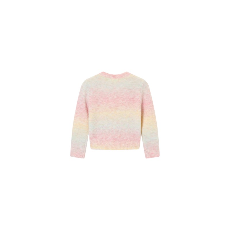 Gebreide pull in degradé oranje en roze. Samenstelling : 47%ACR,29%NYL,15%WOL,8%ALP,1%E