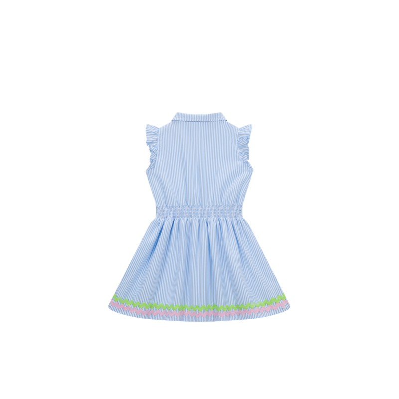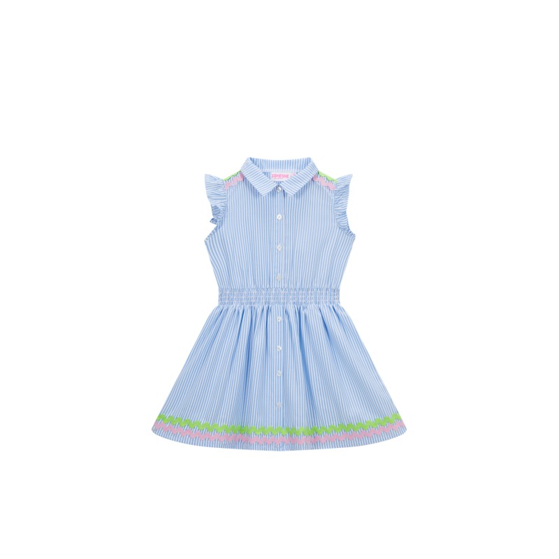 Zomer jurk met fijne streepjes en knoopjes vooraan.