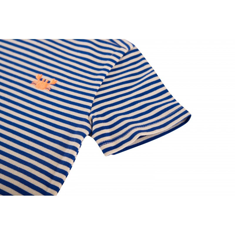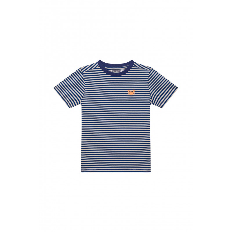Leuk t-shirt met fijne blauwe strepen en kleine print op de borst