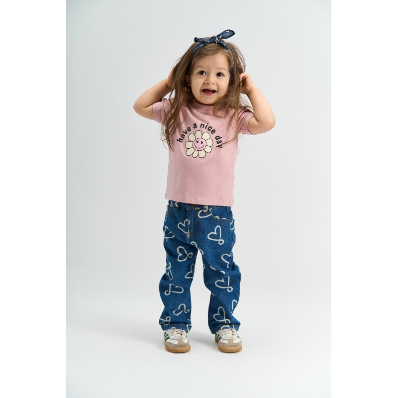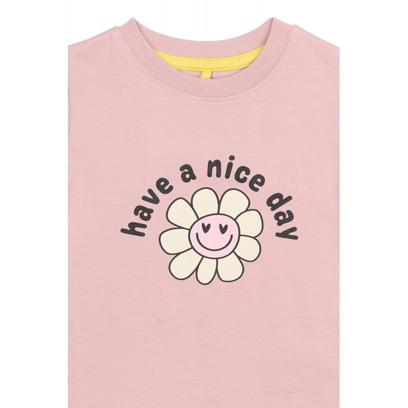 Dit T-shirt met korte mouwen voor peutermeisjes heeft een klassieke ronde hals en een rechte, comfortabele pasvorm. Het is gemaakt van 95% katoen en 5% elastaan, wat zorgt voor een lichte stretch en bewegingsvrijheid. Op de voorkant staat een madeliefje met de tekst "have a nice day". De nette zoom en eenvoudige vorm maken het gemakkelijk om onder een vest of jasje te dragen. Het staat ook leuk met shorts, leggings of rokjes voor dagelijks gebruik.- Korte mouwen en ronde hals met een comfortabele, rechte pasvorm- Print op de voorkant met een madeliefje en de tekst "have a nice day"- 95% katoen en 5% elastaan ??voor stretch; ideaal om te combineren met andere kledingstukken en makkelijk te stylen- Bevat 95% biologisch GOTS-katoen en 5% elastaan. Luxkids is GOTS-gecertificeerd door Control Union, 842535. Alleen producten met het GOTS-label zijn gecertificeerd. Samenstelling: 95% biologisch GOTS-katoen, 5% elastaan