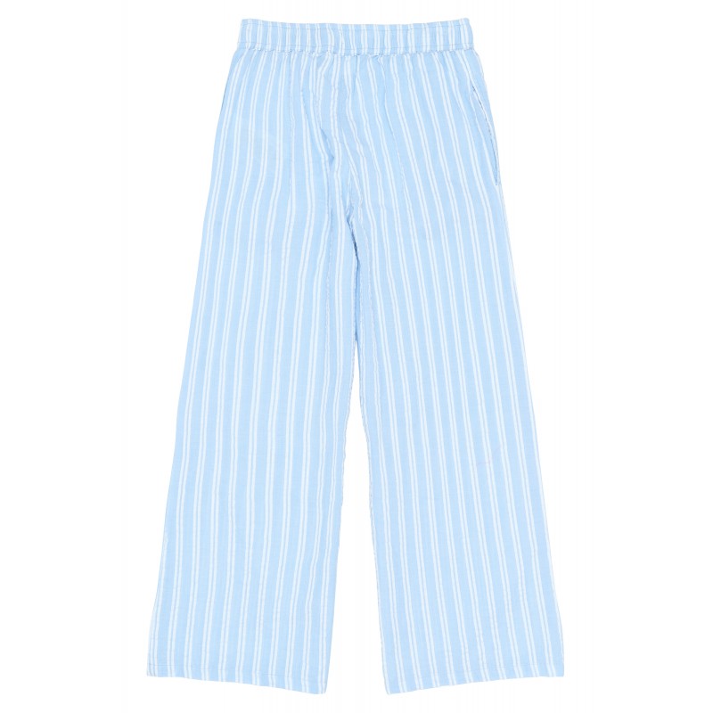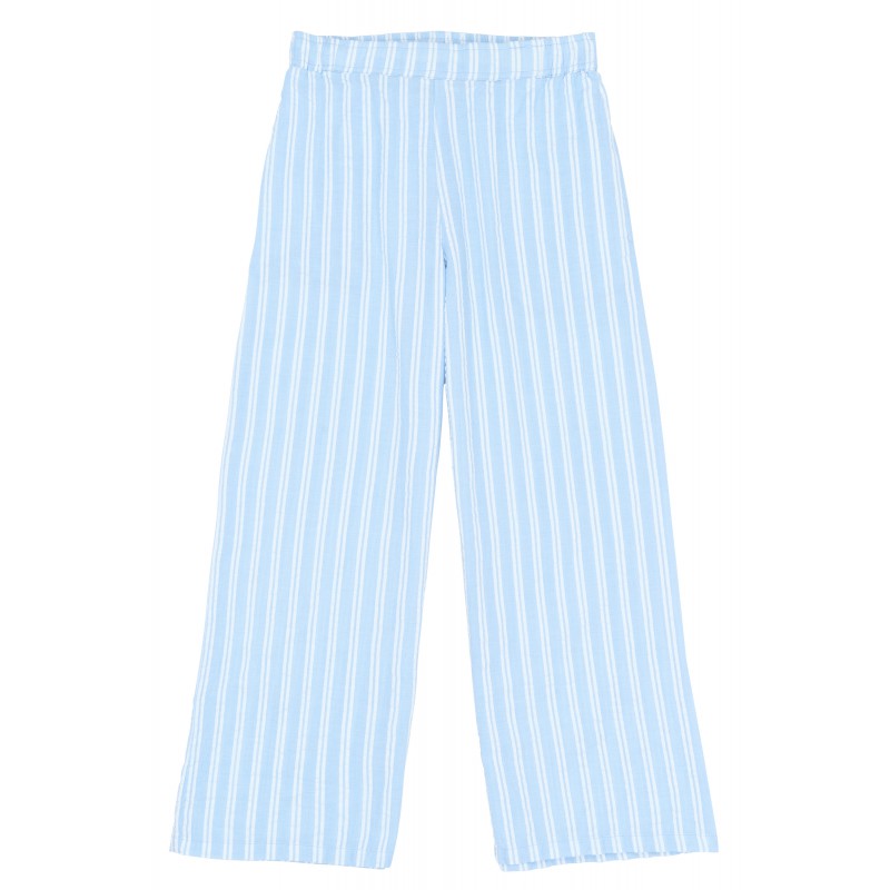 Stijlvolle cargobroek van THE NEW met strepen in lichtblauw en wit. Deze eenvoudige en slimme cargobroek heeft een strakke en moderne look. De broek heeft een losse en relaxte pasvorm, met cargodetails zoals zakken. - Losse pasvorm met wijde pijpen. - Gestreept in blauw en wit. - Grote zakken. - Gemaakt van 60% katoen en 40% viscose.