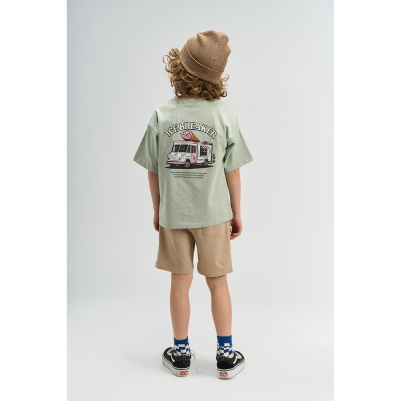 Dit T-shirt met korte mouwen van THE NEW is gemaakt voor jongens en bestaat uit 100% biologisch katoen. Het heeft een ronde hals en een oversized, boxy model met verlaagde schouders voor een relaxte look. Op de borst is een kleine afbeelding van een ijscowagen te zien met de tekst "ICEBREAKER". De rechte zoom en ruime pasvorm zorgen ervoor dat het shirt comfortabel over andere kledingstukken gedragen kan worden en perfect is om onder een hoodie met rits of een lichtgewicht jasje te dragen. Makkelijk te combineren met jeans, shorts of joggingbroeken voor een alledaagse outfit.
