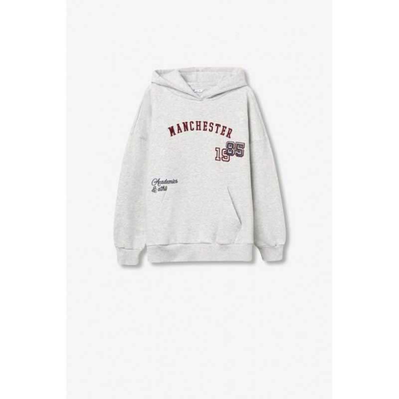 Oversized katoenen sweatshirt met geborduurde en geprinte teksten. Capuchon, lange mouwen, kangoeroezak en geribbelde boorden.
