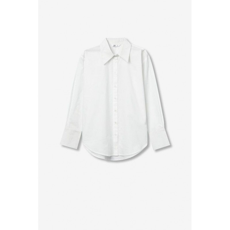 Oversized katoenen overhemd met overhemdkraag, lange mouwen met knoopmanchetten en afgeronde onderkant