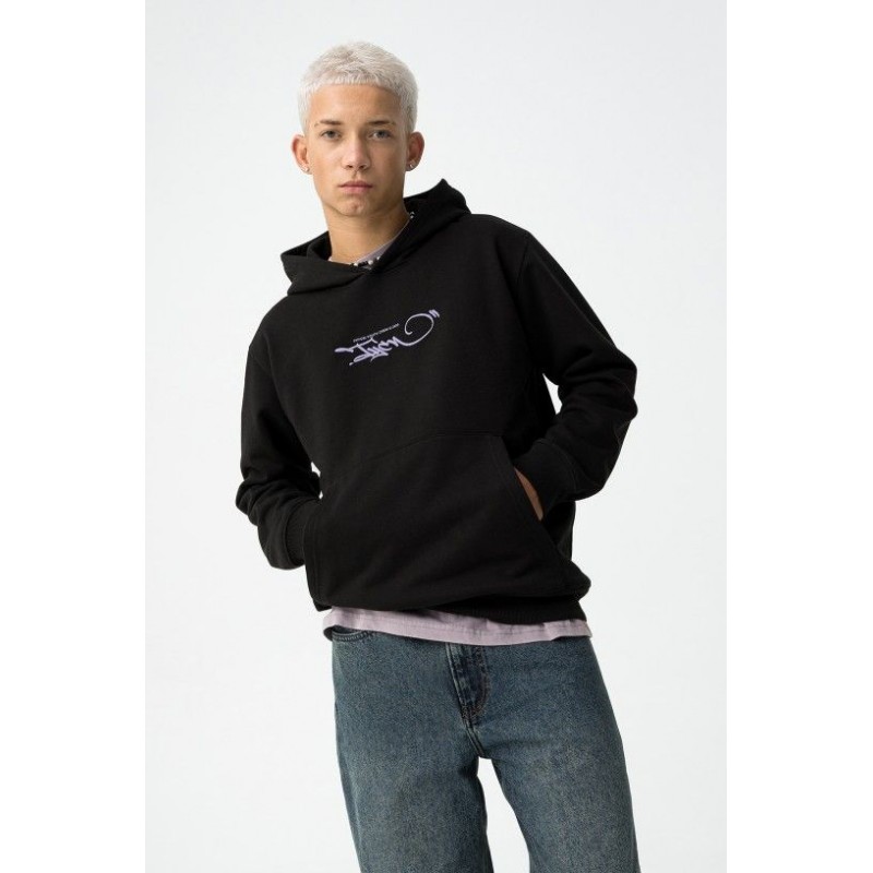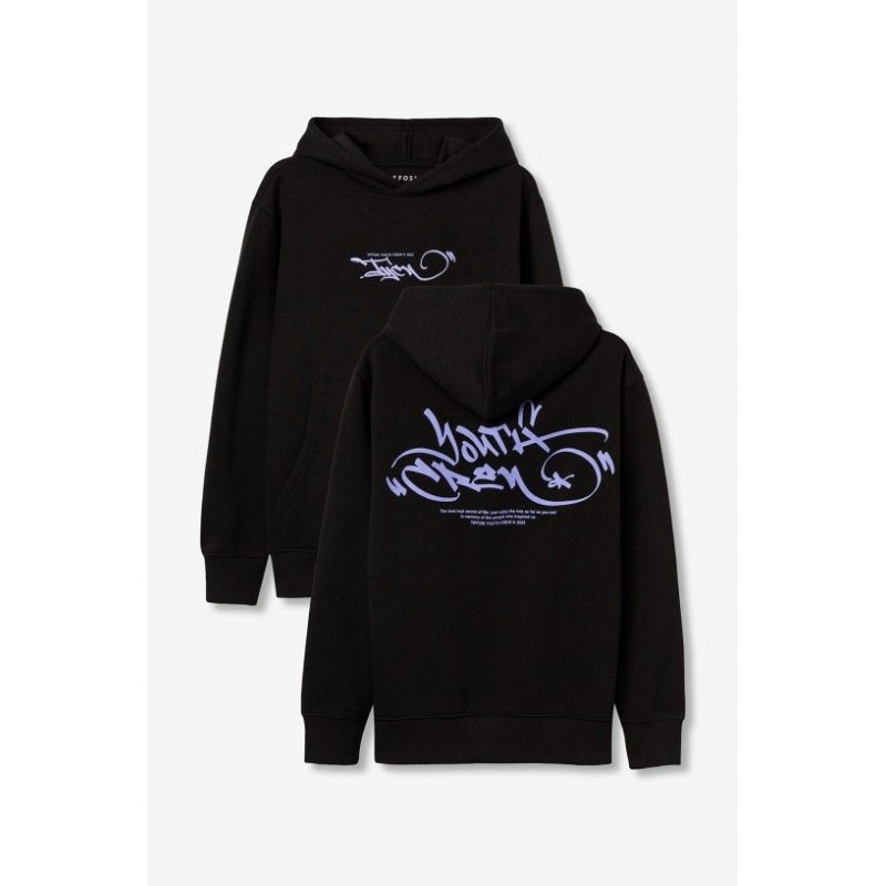 Regular fit hoodie met capuchon van gladde fleece. Kangoeroezak. Geribbelde manchetten en zoom. Borduursel op de borst en grafische print op de rug.