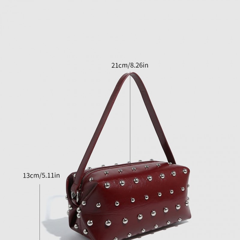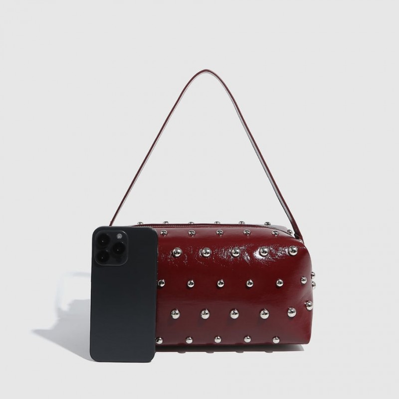 Eenvoudige hip-pop/rock effen PU handtas met klinknagels